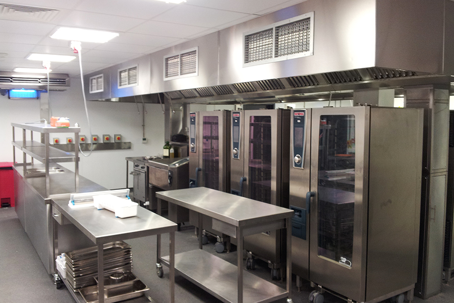 The core challenge associated with designing the main production kitchen was accommodating the huge range of equipment required, as the client was looking to provide a variety of menus from the same kitchen (from high-end hospitality dinners to casual bistro-style meals). We made sure to incorporate a functional design and a selection of efficient cooking equipment to combat this challenge. On top of this, our project management team provided working drawings and technical support during the fit-out phases of the wider build, ensuring smooth integration of catering features within the work of all other trades on site.