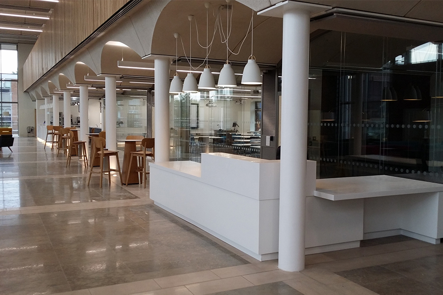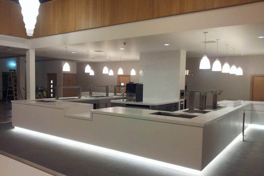 The NTU Clifton Pavilion and Refectory are brand new, state-of-the-art communal buildings for students at the sporting campus. This project, split into two parts, involved the design, supply and installation of numerous counters within the award-winning development.